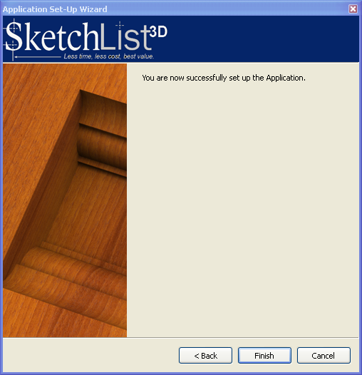 The Application Set-Up Wizard contains a screen where you can enter information about yourself and your shop. SketchList 3D uses this information on report headings, if you choose to include your company information on reports.