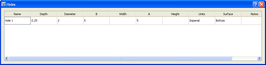 To edit information in the Holes Spreadsheet, or to clone or delete a hole, right-click on the hole's row and choose a command from the drop-down menu that appears.