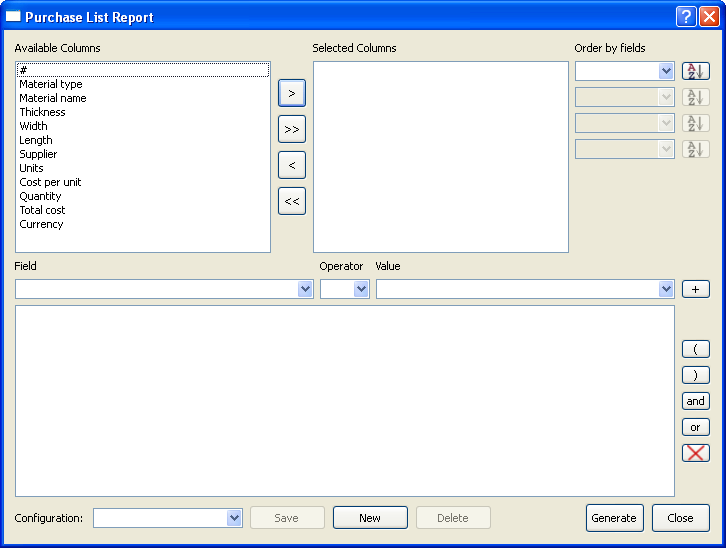 The Purchase List Report Dialog