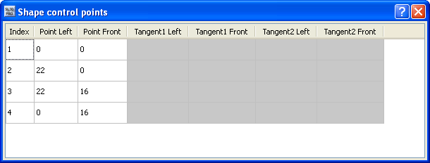 The Shape Control Points dialog shows the following information about each of the points on the currently selected board when you are working with the Shape Toolbar:
