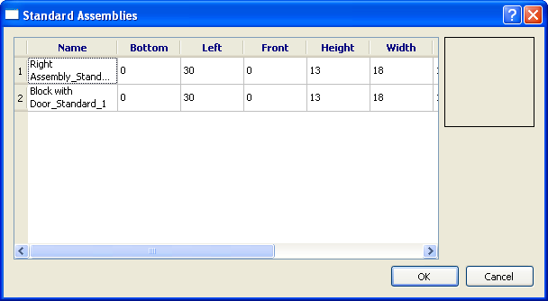 The dialog also displays a preview of the currently selected standard assembly.